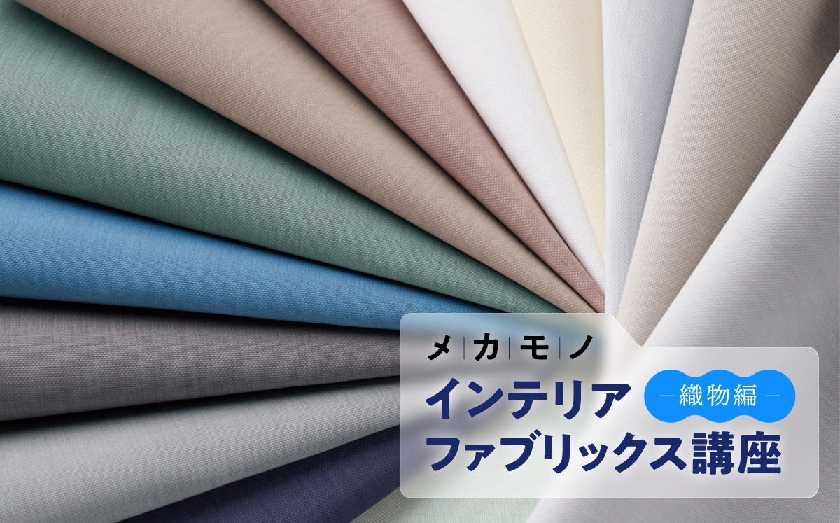 洋服、ラグやソファーの張地、寝具など、私たちの身の回りには様々な『生地』があります。生地と言っても厚手のものから薄手のもの、同じような厚みなのに雰囲気、表情が異なるものなど、私たちの身近にあるものなのに、よくわからないことも多い生地。今回は少し専門的ですが、ロールスクリーンやバーチカルブラインド、プリーツスクリーンなど、『メカモノ』と言われる窓まわり商品の生地を例に、インテリアに使われる生地=インテリアファブリックスについてご紹介していきます。まずは織物編です。